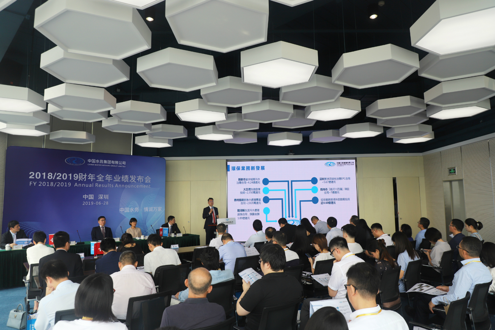 6月28日上午,中國水務2018/19財年全年業績發布會在深圳榮超經貿中心召開。